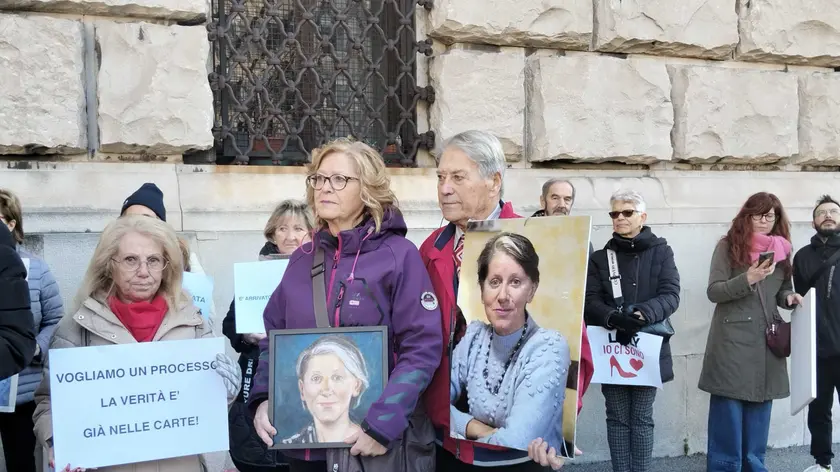 (ANSA) - TRIESTE, 11 DIC - Si sono dati appuntamento per un sit-in davanti al tribunale di Trieste questa mattina parenti e amici di Liliana Resinovich, la donna scomparsa quattro anni fa, il 15 Dicembre 2021 e ritrovata cadavere nel parco cittadino di San Giovanni il 5 Gennaio successivo. In tanti mostravano un'immagine di Liliana e grandi cartelli con scritte per chiedere giustizia e verità. Tra i presenti c'era anche il fratello della donna, Sergio Resinovich, che ha avuto parole di rabbia in particolare contro l'uomo che qualche settimana fa ha detto di aver ceduto sacchi neri a sua sorella tempo prima della scomparsa, sacchi simili a quelli all'interno dei quali è stato rinvenuto il corpo. Una voce considerata inattendibile dal fratello. Anche Claudio Sterpin, l'amico di Lilliana, ha partecipato al sit-in, esponendo un cartello con le motivazioni della mobilitazione, voluta, si legge, "in modo pacifico e civile per ricordare Liliana Resinovich e per riaffermare con forza la necessità di restituire dignità e verità a una donna, a una cittadina italiana, vittima, secondo elementi chiari e gravi, di un omicidio". Una trentina le persone presenti, alcune delle quali hanno mostrato anche cartelli con scritto "vogliamo un processo, la verità è già nelle carte". (ANSA).
