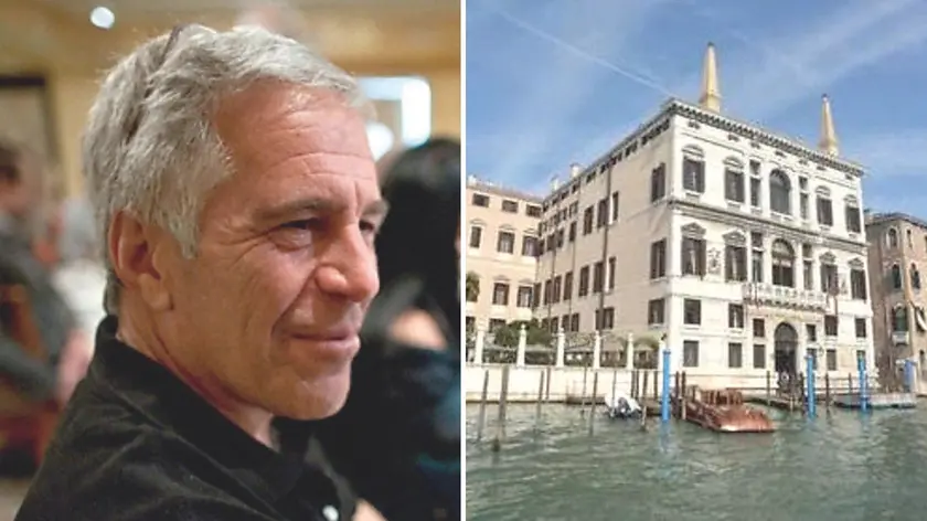 Jeffrey Epstein e, a destra, Palazzo Papadopoli sul Canal Grande, ospita il prestigioso Aman resort