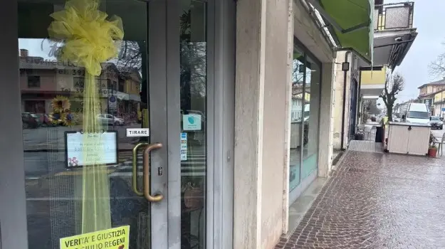 "Verità e giustizia per Giulio Regeni-10 anni con Giulio" si legge nei cartelli esposti da negozi e locali.