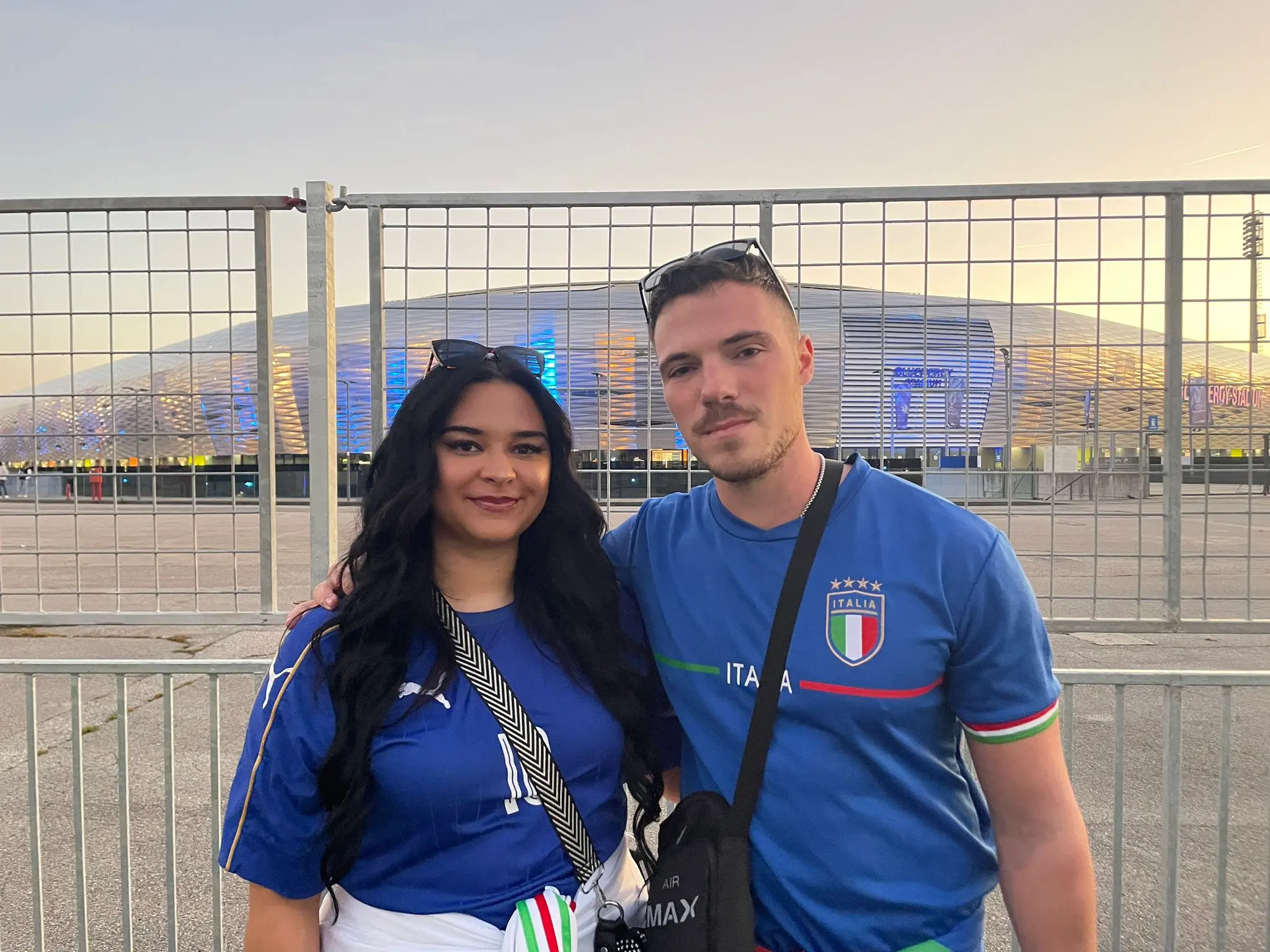 Marco Wirt e Selina Schlick, arrivati da Francoforte, vivono la loro prima volta a Udine con grande entusiasmo. Davanti allo stadio Friuli, indossano entrambi la maglia azzurra: hanno scelto il Friuli per una “soccer holiday”, venendo dalla Germania per tifare la squadra di Gattuso. La coppia ha organizzato due giorni di vacanza con la passione per il calcio e, ormai abituati alle proteste proPal nella loro città, non si sono lasciati scoraggiare dal clima pre-partita. "Speriamo vinca l'Italia" è l'auspicio di Marco.