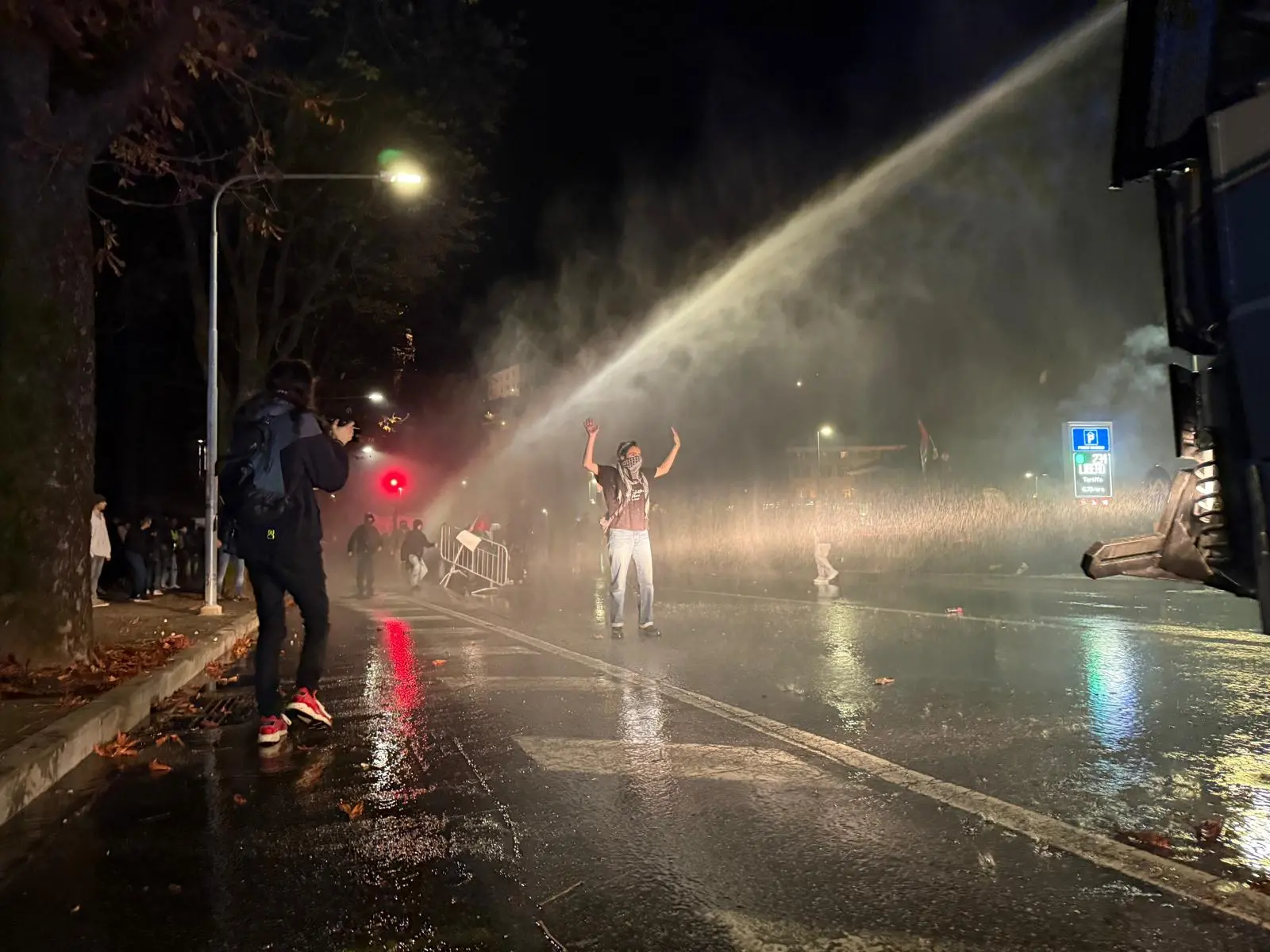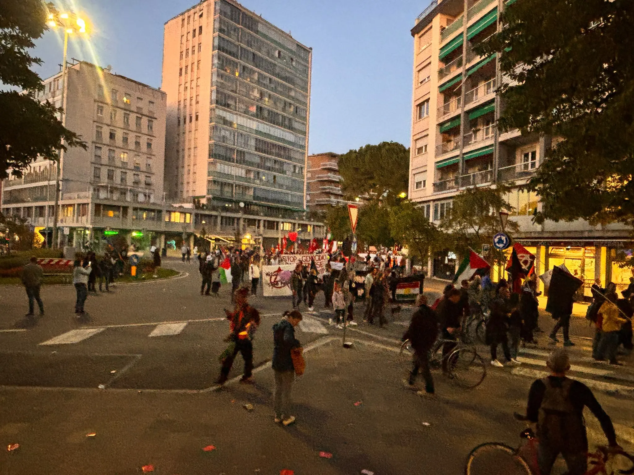 Teatro della guerriglia urbana viale della Vittoria, la strada che collega piazza Primo Maggio – che era il punto d’arrivo della manifestazione – a piazzale Osoppo. Tutto è cominciato verso le 20. 30, quando l’evento organizzato dal Comitato per la Palestina di Udine (cui hanno preso parte circa 8 mila persone secondo stime della questura e circa 15 mila a giudizio degli organizzatori) stava volgendo al termine.