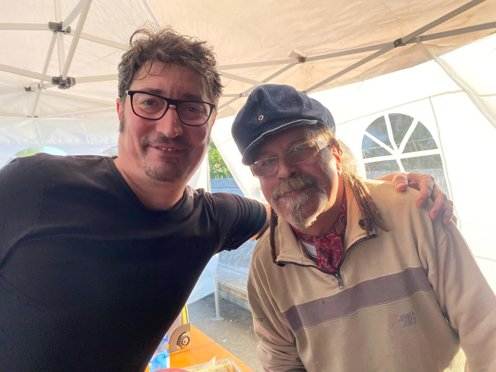 Pablo Perissinotto e Sir Oliver Skardy: la strana coppia. Il primo, trevigiano, esponente del cantautorato sociale, invitato da papa Francesco in Vaticano e apprezzato dal presidente Mattarella. Il secondo, veneziano, icona reggae degli anni Novanta, già leader dei Pitura Freska, che cantava “Papa nero” e “Oi ndemo veder i Pin Floi”.