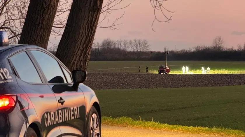 Gli investigatori sul luogo in cui è stato rinvenuto il corpo del giovane, in un campo del Comune di Mira