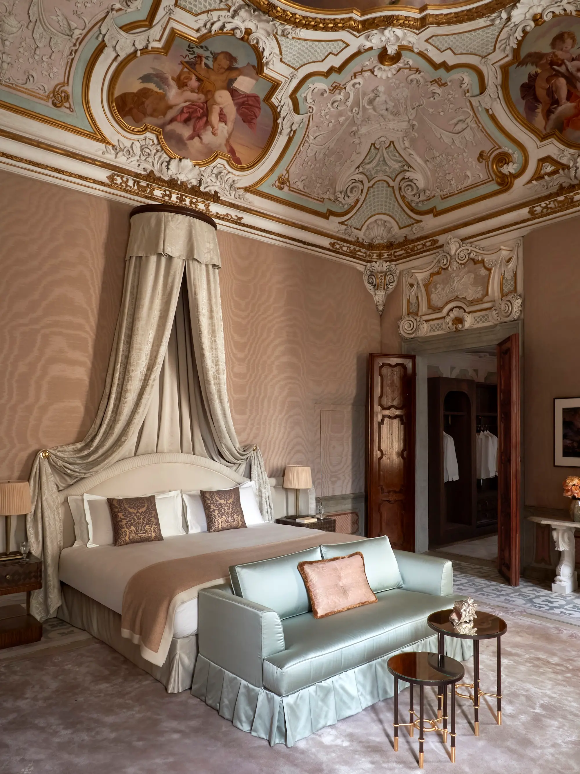 Le 47 camere, suite e residenze raccontano l’eleganza più intima della vita veneziana, con ambienti plasmati dalle stratificazioni architettoniche dei secoli. Affreschi restaurati, soffitti scultorei e affacci su giardini e canali creano un’esperienza immersiva e profondamente legata al luogo.