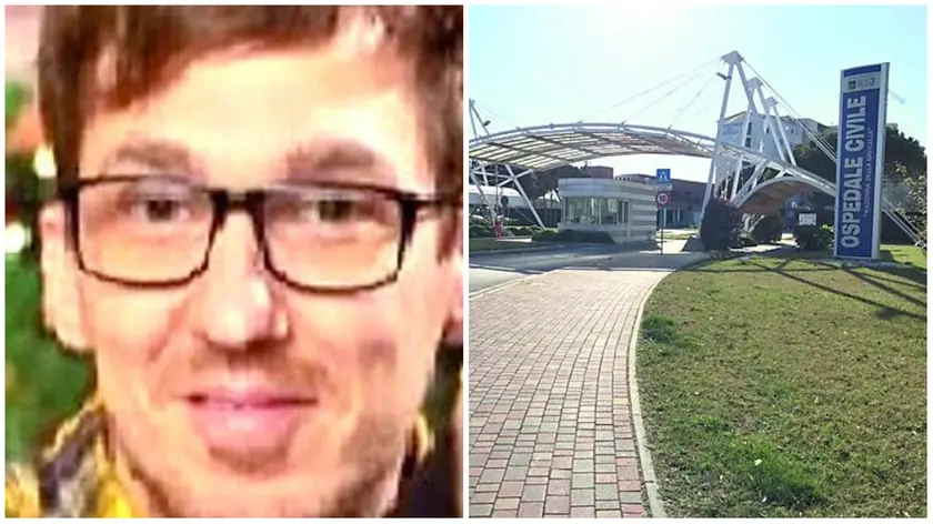 Federico Signoretto e a fianco l'ospedale di Chioggia