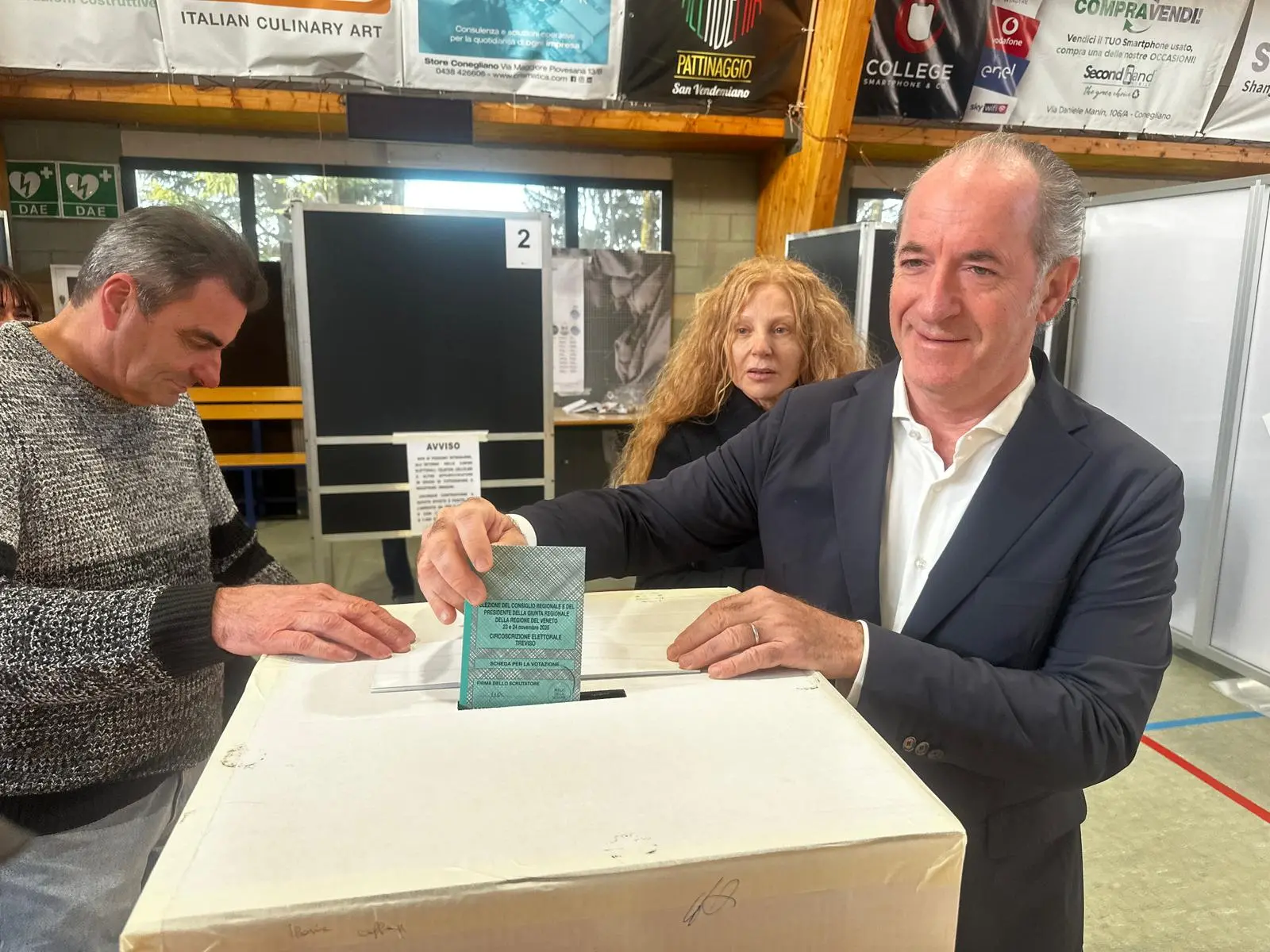 Il presidente uscente della Regione Veneto Luca Zaia ha votato questa mattina alle 9.00 al seggio delle scuole di San Vendemiano, in provincia di Treviso.