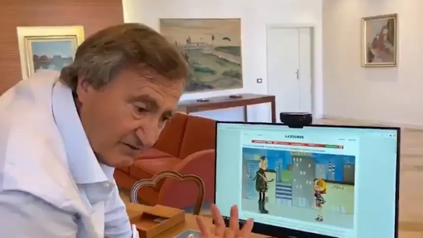 Brugnaro mentre lancia il cartone animato della lista Terra e Acqua sui propri canali social