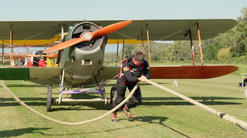 Una nuova impresa è stata conseguita da Alex Camera, l’atleta pordenonese sempre alla ricerca di particolari prestazioni nel campo delle discipline estreme, tra cui il trascinamento di oggetti di particolare peso e dimensioni. Alex Camera è tornato su un palcoscenico che lo aveva già visto protagonista in passato: a Nervesa della Battaglia tra le colline del Montello e le sponde del Piave dove ha sede la fondazione Jonathan Collection guidata da Giancarlo Zanardo, una sorta di museo dell’aeronautica che colleziona e fa volare i più famosi velivoli storici tra cui le repliche originali del Flyer dei fratelli Wright (primo volo a motore nel 1903) e del famoso triplano Fokker del mitico Barone Rosso utilizzato nella prima guerra mondiale. A Nervesa sono stati edificati gli hangar, del tutto simili agli originali dell’epoca, con una adeguata pista per il decollo e l’atterraggio degli apparecchi.