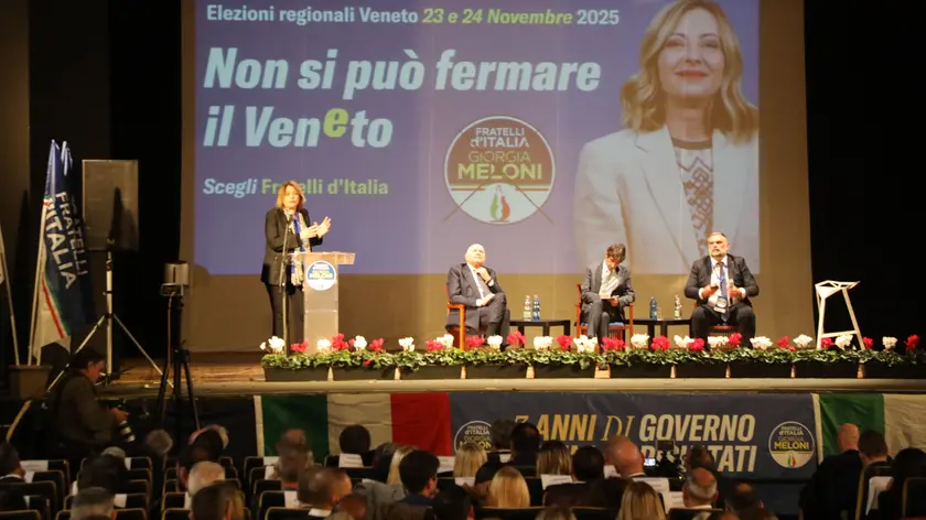 È il responsabile dell’organizzazione di Fratelli d’Italia, Giovanni Donzelli, a lanciare la promessa dal palco del teatro Corso di Mestre, che ieri ha fatto da cornice all’evento “Tre anni di Governo Meloni, tre anni di risultati”, promosso dal partito. Un incontro – dal tono celebrativo, ma anche politico, in vista delle elezioni in Veneto (presenti infatti i candidati al Consiglio) – in cui le parole più ricorrenti sono «orgoglio» e «sinistra».