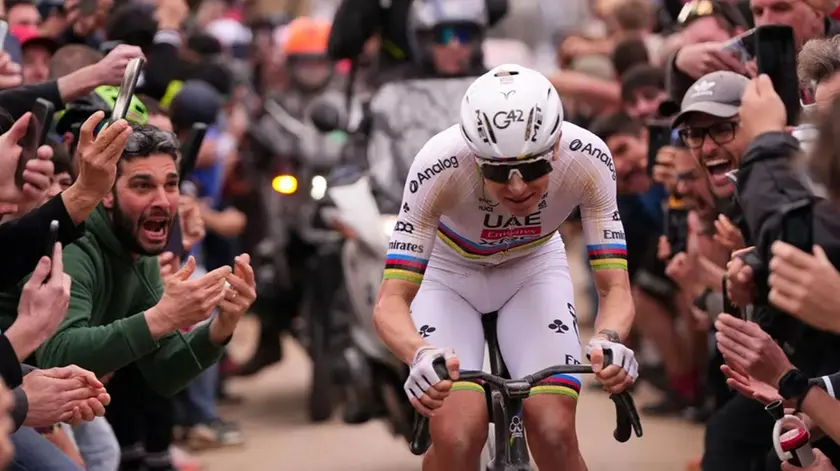 Nuova stagione vecchie abitudini. Tadej Pogacar fa esattamente come nelle ultime due edizioni. Attacca da lontano e si beve i tratti di strade bianche (splendidi e al solito affollati di tifosi entusiasti) e gli avversari.