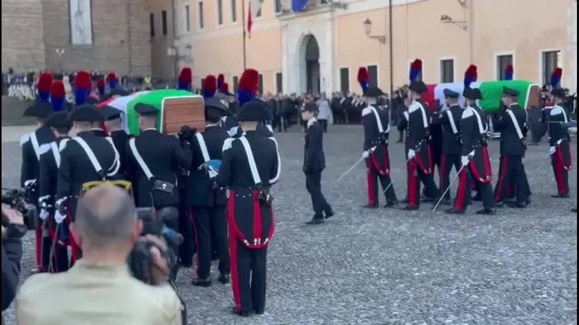 L'arrivo dei carri funebri alla basilica di Padova per i funerali di Stato