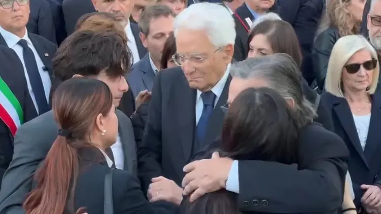 Mattarella abbraccia il figlio del carabiniere ucciso a Castel d’Azzano: il video