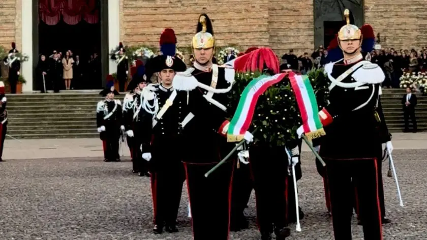 L'ingresso dei feretri dei tre carabinieri nella basilica di Santa Giustina. Il video